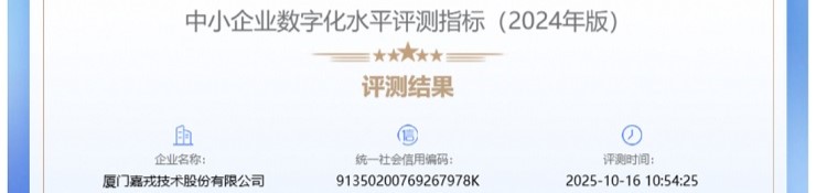 喜訊!嘉戎技術獲評《中小企業(yè)數字化評測指標》三級認證